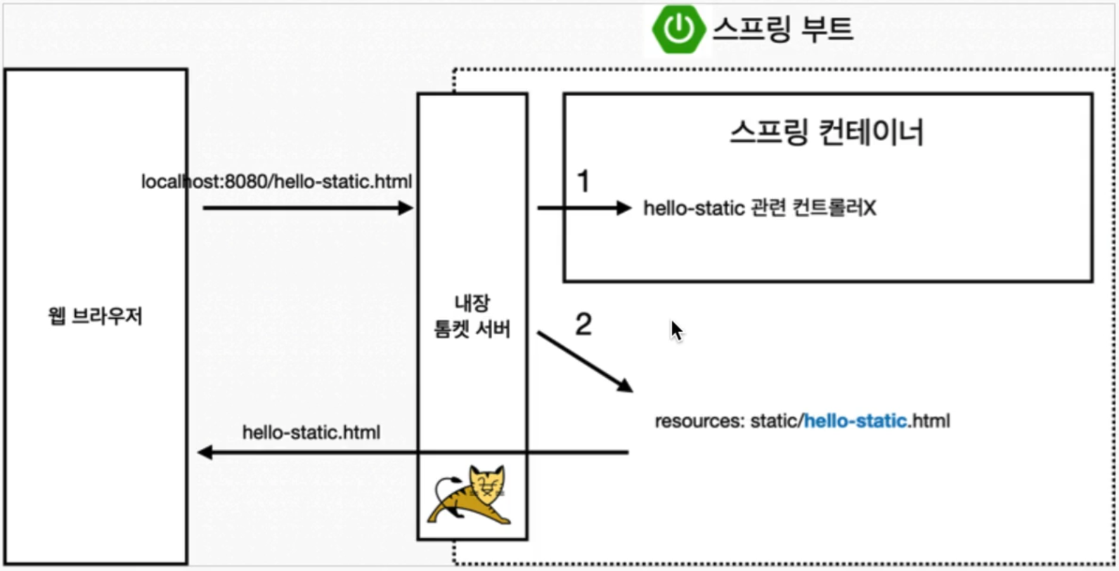 hello-static.html을 내장 톰켓 서버에 요청한다.