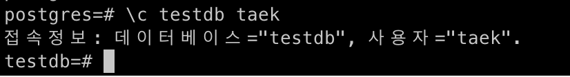- 나는 taek 계정에 testdb에 모든 권한을 주는 명령어를 작성했다.