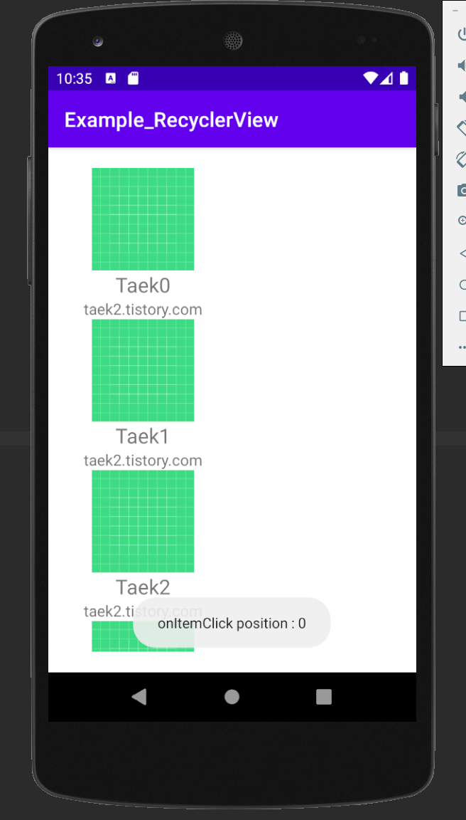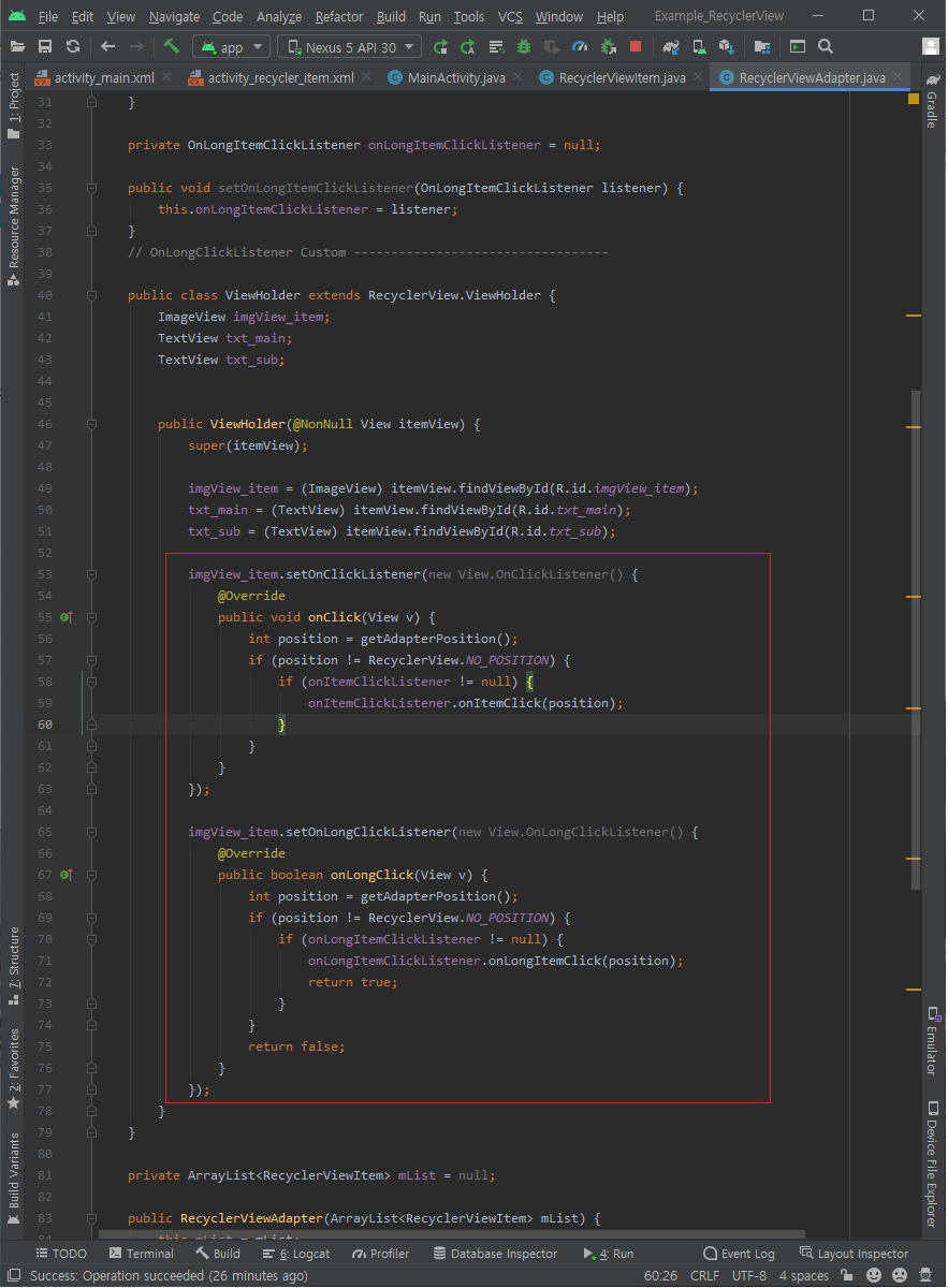 - 같은 RecyclerViewAdapter.java 파일에서 ViewHolder 생성자 안에 다음 소스코드 추가