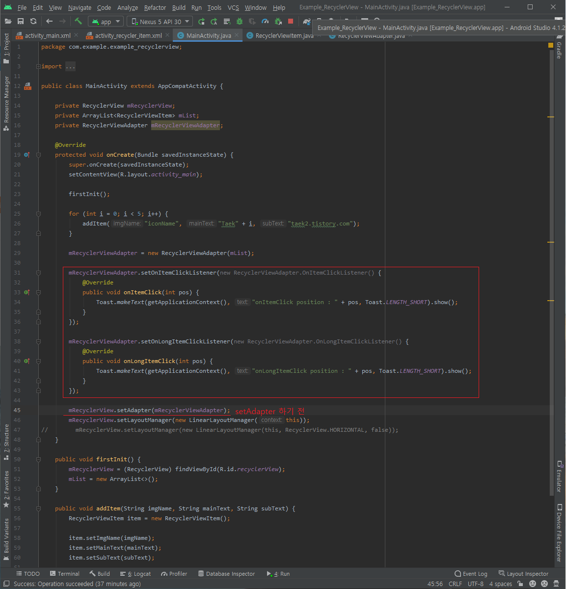 : 리사이클러뷰 setAdapter() 하기 전에 구현