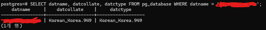 출력 결과에서 datcollate 값이 ko_KR.UTF-8이 아니라면, 한국어 정렬이 정상적으로 동작하지 않을 가능성이 높다.