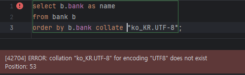 만약 데이터베이스를 새로 생성할 수 없는 경우, ORDER BY에서 직접 Collation을 지정하여 해결할 수 있다.