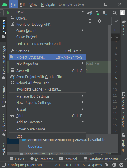1. File > Project Structure... ( 또는 Ctrl + Alt + Shift + S )