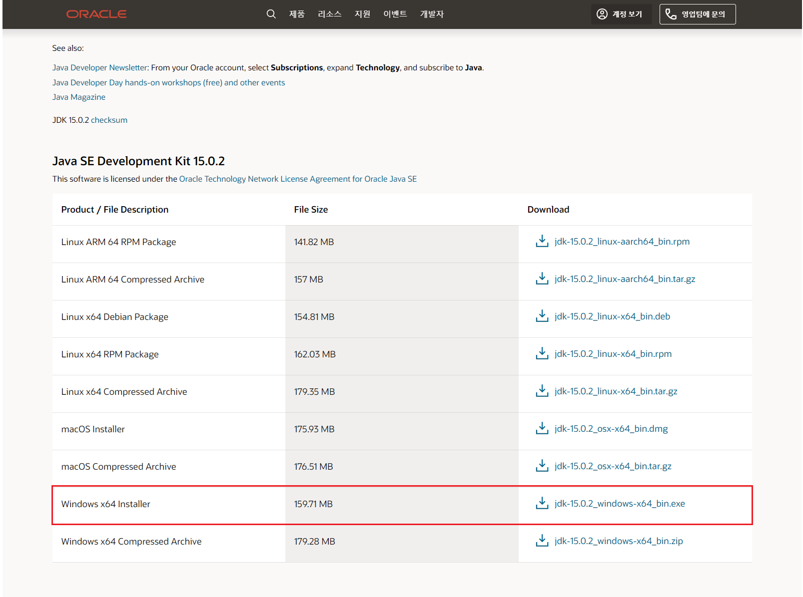 - Java SE 15 버전 다운로드