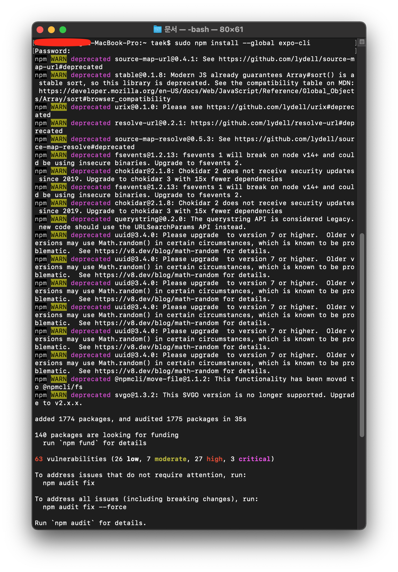 전역으로 설치하면 어디서든 expo 명령어를 사용할 수 있다.