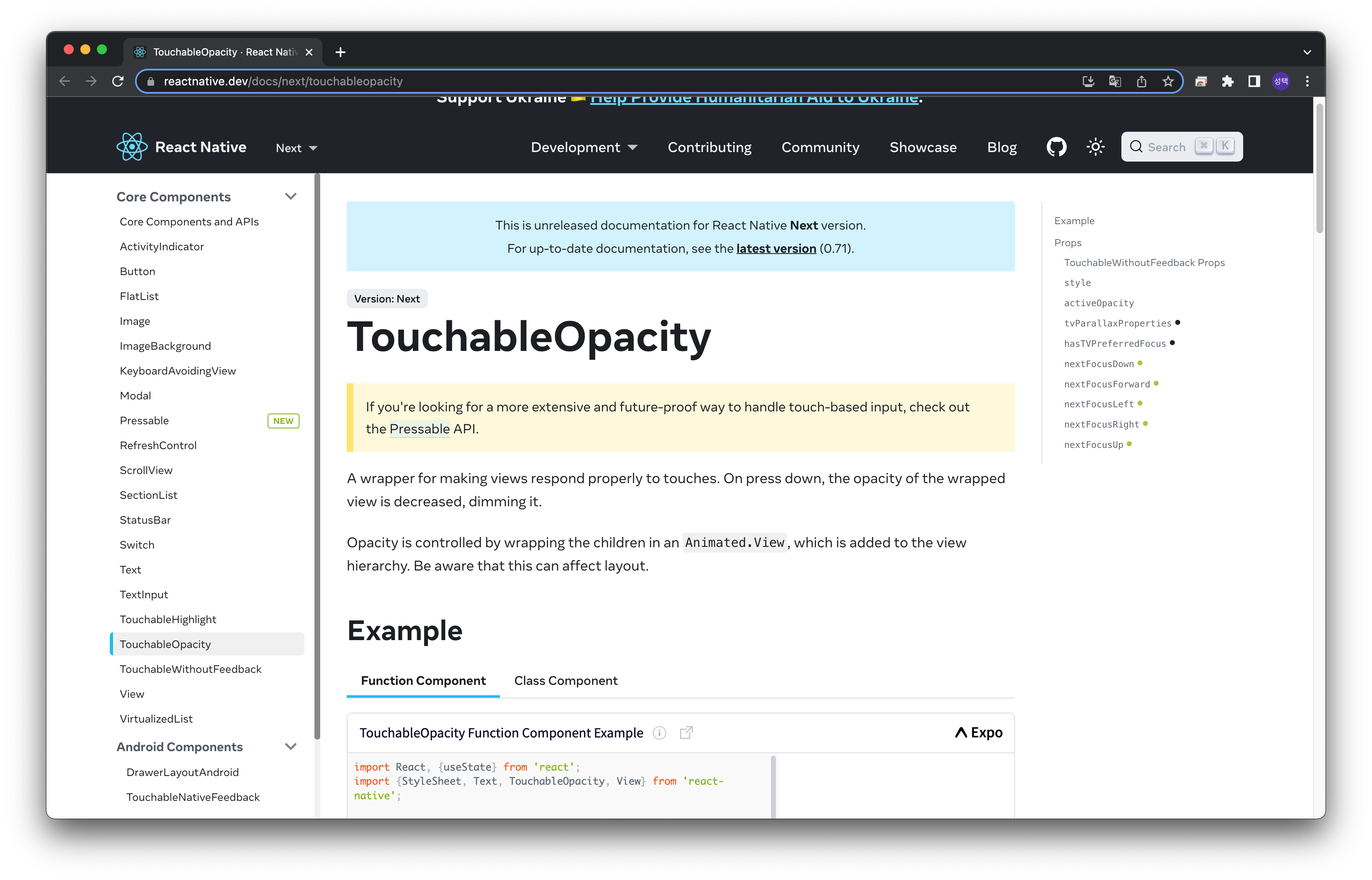 - 위와 같이 공식 문서에 보면 좀 더 광범위하게 설정할 수 있는 pressable 추천함 => 없어질 가능성 있음