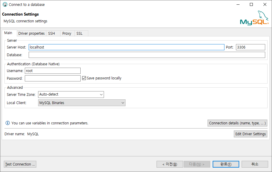 2. 사용할 DB 선택 - 다음